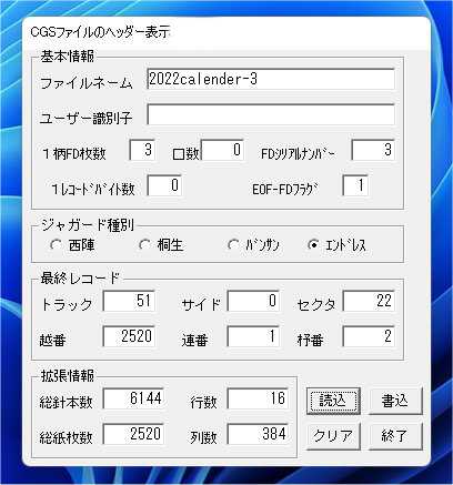 「Windows11」PCにて、フロッピーにCGSデータ書き込み、CGSフロッピーのヘッダー表示