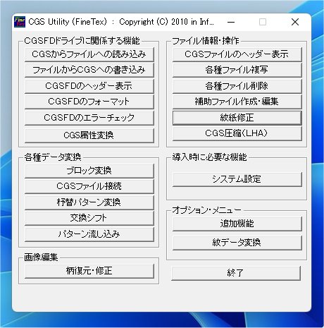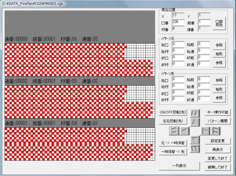 FineTex 紋データ編集ソフト 紋データ変換・CGS読み込み・CGS書き込み・接続・パターン修正・・・・ |